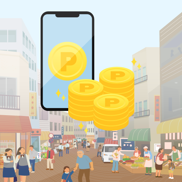 地域店舗での利用に連動したポイント付与。行政補助と連携し、地域経済の活性化を促進。商店街売上+12%の経済効果を創出。詳しく